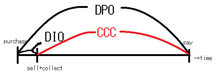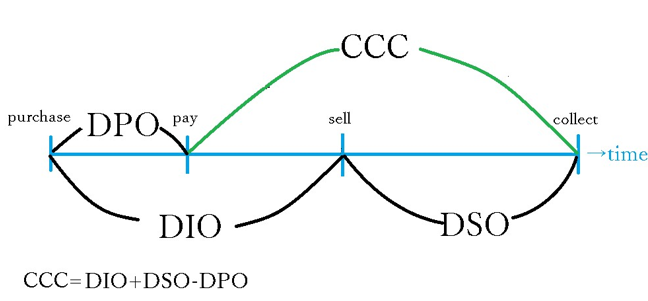 Ignore DPO, DSO and DIO, just focus on CCC. CCC is the period from purchase payment to receivable collection. The shorter it is, the better, because it means the company can retrieve cash faster.