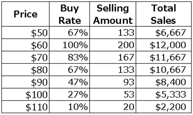 You might think the best price is the one where “price × buy rate” is the highest (which gives you the highest total sales). But that’s wrong.
