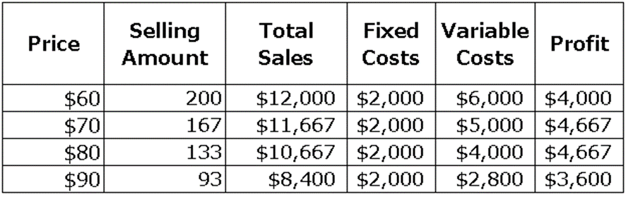 In this example, the $80 and $70 price points generate more profit than $60, despite having lower total sales. Logically, choosing $80 makes the most sense as you’ll have fewer customers, resulting in less work you have to provide.