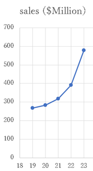 The company’s sales have increased so rapidly, because of the cheap price and the good quality. Especially in 2022 and 2023, the growth accelerated.
