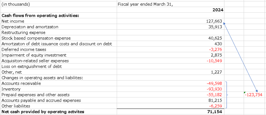 However, when I see the Cash Flow statement from the 2024 annual report, the cash outflow from operation is almost the same amount as net income.